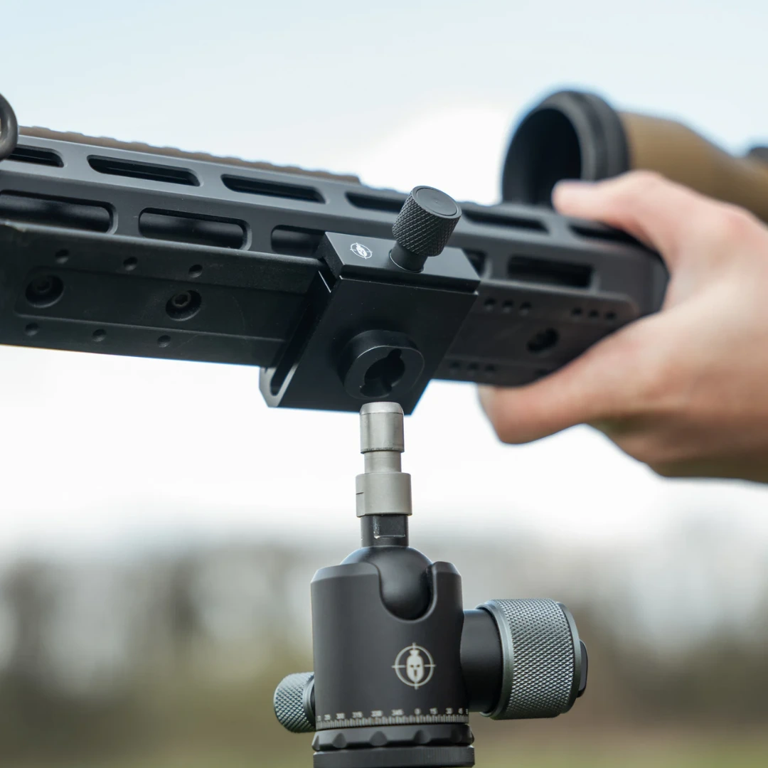 – A largura ajustável da braçadeira aumenta a compatibilidade com placas e trilhos Arca