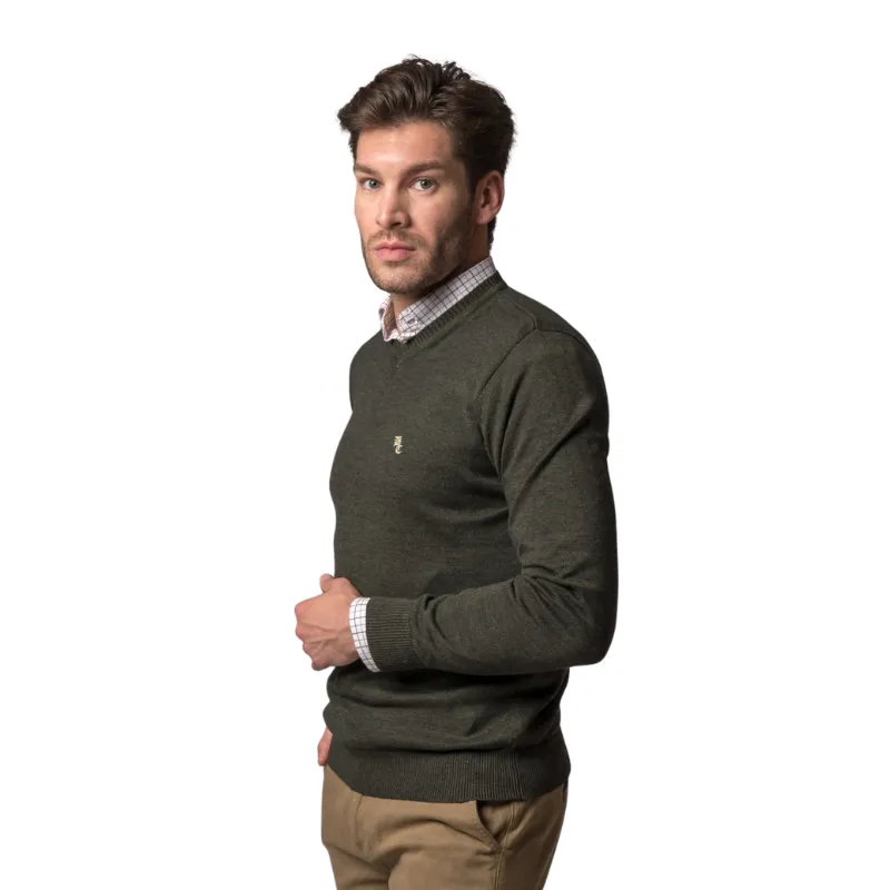 Pulover British Cotton liso com decote em V, manga comprida e logotipo da marca gravado na frente na cor Cru. Gola, punhos e bainha em acabamento abalado.