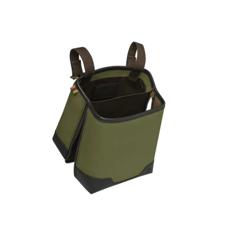 Equipado com um sistema de fixação rápida ajustável com dois ganchos de latão, permitindo uma fixação fácil e segura ao cinto do atirador, sem necessidade de remover o cinto para fixação ou remoção. A bolsa é dividida em dois compartimentos: um para cartuchos cheios e outro para invólucros vazios. Um prático fecho zíper inferior permite o descarte rápido de invólucros usados sem separar a bolsa.