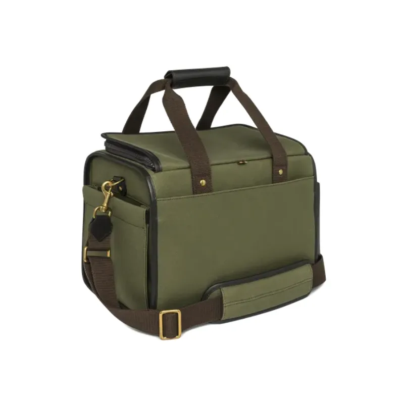 Possui um bolso de couro reforçado para armazenar com segurança os óculos de tiro. A base quadrada garante excelente estabilidade, mantendo a bolsa na posição vertical mesmo em terrenos irregulares. No interior, um sistema organizacional modular permite que os usuários personalizem os compartimentos. Atende às suas necessidades, protegido com um sistema confiável de fixação de gancho e laço.